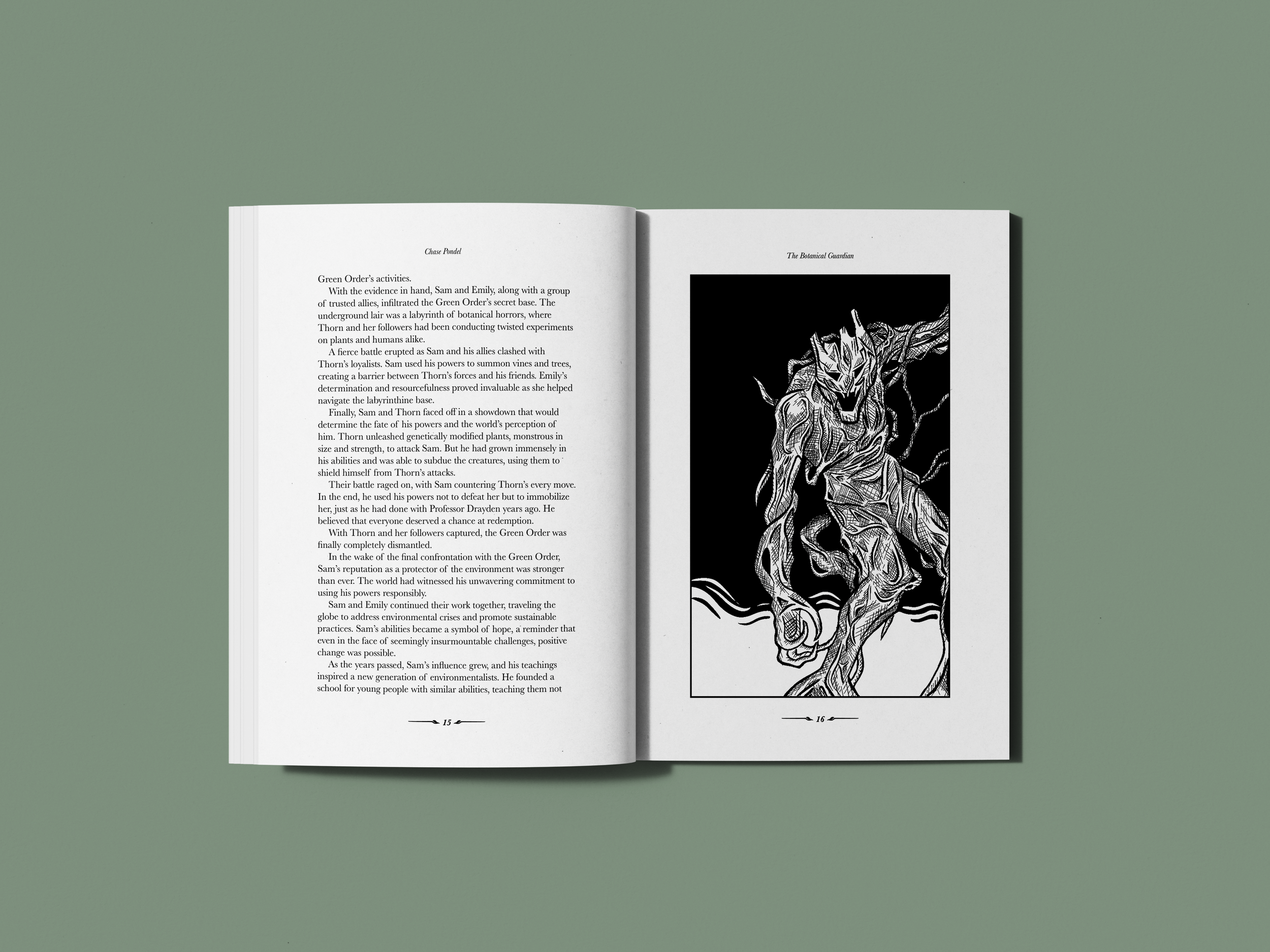 Using ChatGPT, write the first three chapters of a book. An illustration must then be made for each chapter. The student will design the book cover, along with a consistent layout for the pages within. Decorative page numbers and chapter ornaments must follow the imagery and themes of the story.